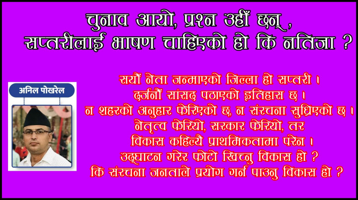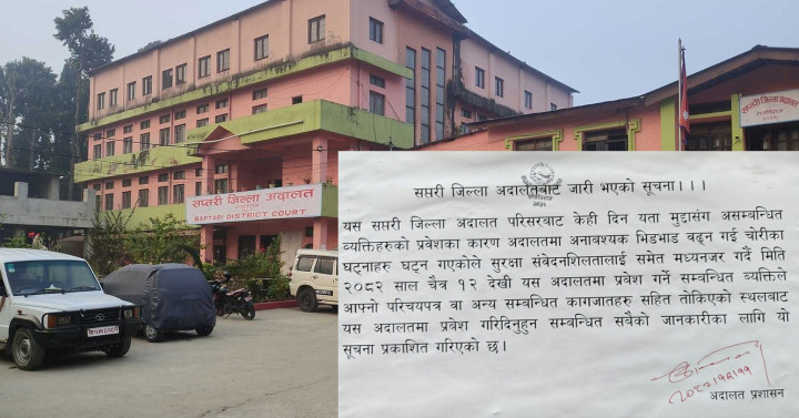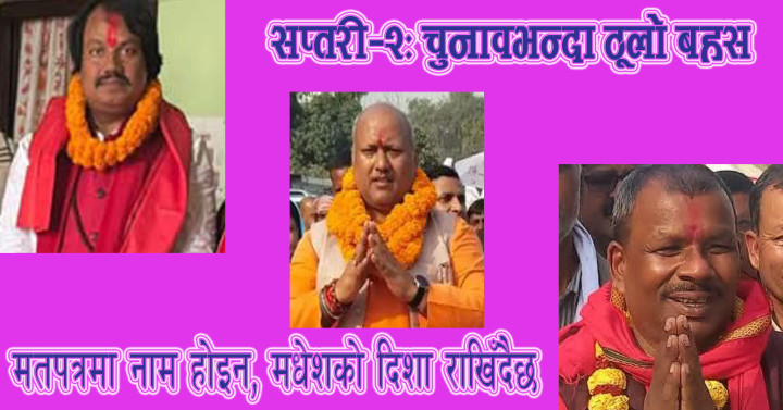 तरबारले केक काट्दा‘ जन्मदिनको रमाइलो सिधै हिरासतमा ! | घोघी टिप्न गएकी महिला कोशी टप्पुको तलाउमा डुबेर बेपत्ता | खोत्तरदेवी गुफा: भीड बढ्दै, राज्य हराउँदै ,“पार्किङ” र “मेला शुल्क” का नाममा अवैध असुलीको खेल | रूपनगर क्याम्पसमा एकराज ढकाल स्मृति छात्रवृत्ति स्थापना | एक दिनको चमत्कार: कञ्चनरूपको सुनाखरीले फेरि जगायो चासो | सप्तरीका किसानका समस्या संसदमा : अब कार्यान्वयनको चुनौती | कमला–कञ्चनपुर चार लेन सडक विस्तार कार्यमा चरम ढिलाइ | सप्तरी प्रशासनको कडा कदम : सरकारी कार्यालय वरिपरि ‘बिचौलिया’ देखिए तुरुन्त कारबाही | बादलको अभिव्यक्तिले एमालेमा तरंग | मालपोत कार्यालय सप्तरीबाट लेखापढी व्यवसायी पक्राउ |