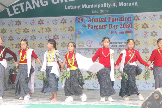 लेटाङ । लेटाङ ग्रीनभ्याली एकेडेमीले आफ्नो २८ औं वार्षिकोत्सव तथा अभिभावक दिवस शुक्रबार विभिन्न कार्यक्रम गरि मनाएको छ । लेटाङ ४ स्थित विद्यालयको परिसरमा वृहत साँस्कृतिक तथा सम्मान कार्यक्रम गर्दै ग्रीनभ्यालीले वर्षिकोत्सव तथा अभिभावक दिवस मनाएको हो ।