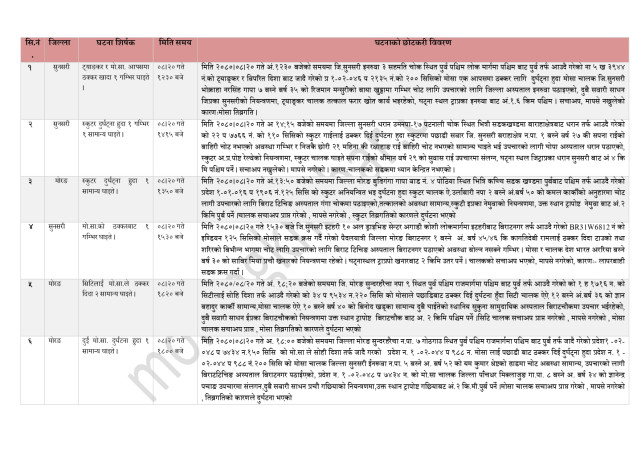 मंसिर २० गते बुधबार कोशी प्रदेशमा भएका सवारी दुर्घटनाको विस्तृत विवरण यसप्रकार छ ।